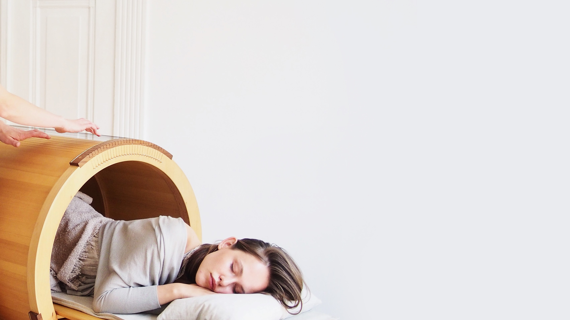 During the relaxation session, a person lays down on a bench, on which they are pushed inside the instrument, thanks to which they can experience the action of sound waves inside the Sonora. The vibration produced by the gentle plucking of the Sonora's strings spreads through the bridge of the tube and on to the rest of the instrument. Sound waves travel through muscles, tissues and bones, reaching every corner of the body, and the subtle music allows you to drift off to sleep or enter a state of meditation. Sonora naturally restores the harmony of body and mind.